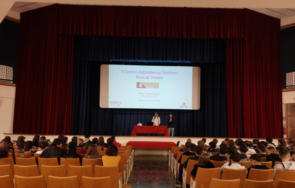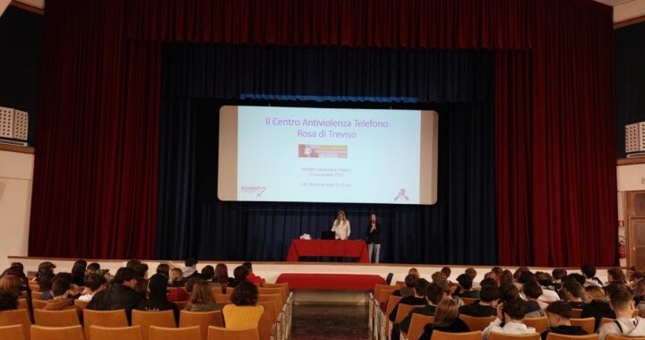 Venerdì 25 novembre, in occasione della giornata internazionale per l’eliminazione della violenza contro le donne, le classi del biennio e del triennio del liceo hanno incontrato in aula magna la dott.ssa Rita Giannetti, psicologa e presidente dell’associazione Telefono Rosa di Treviso.