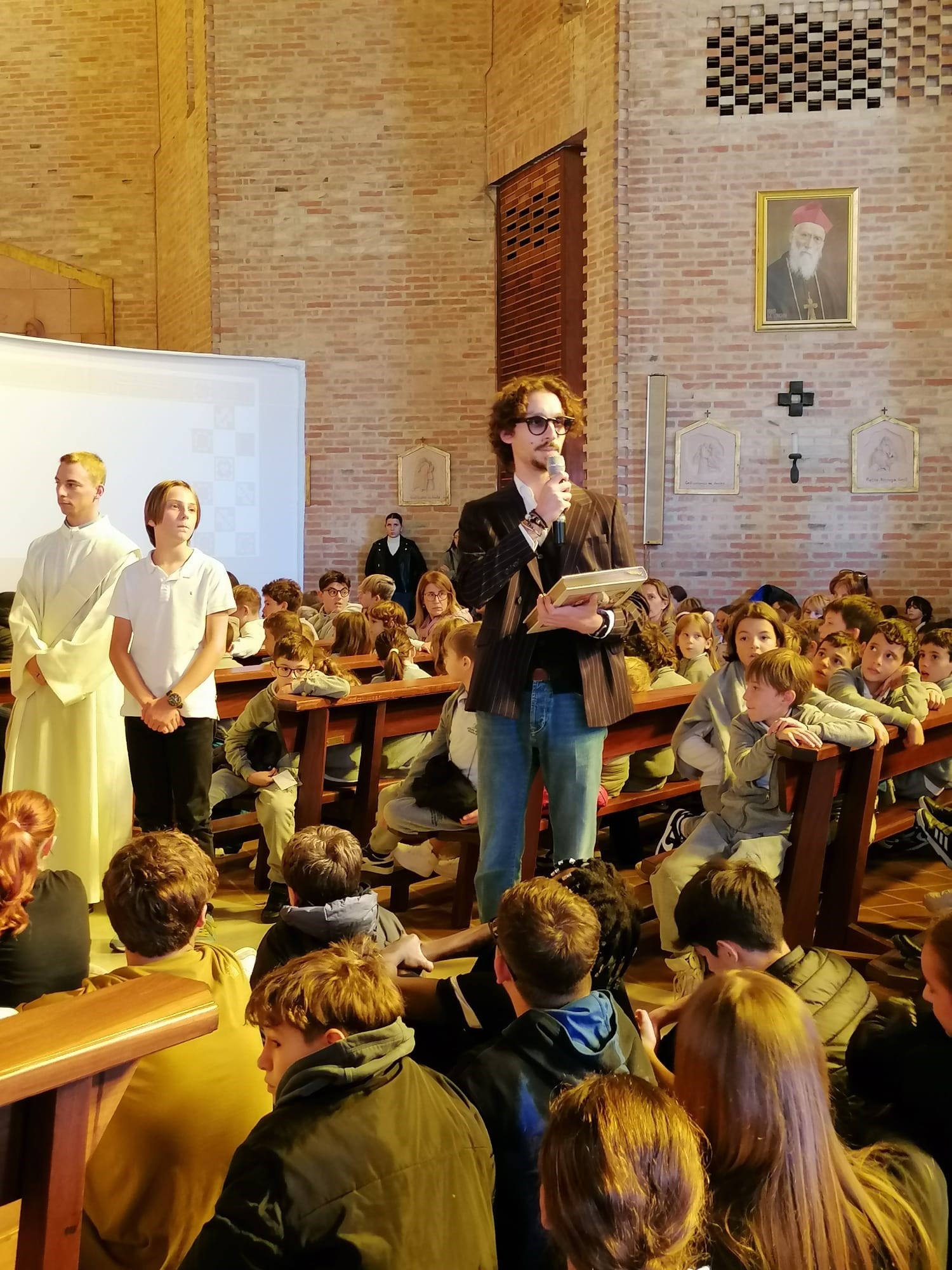 Il Vangelo sempre al centro, portato dagli studenti delle medie. Le quinte Liceo hanno accompagnato per mano i bambini che hanno iniziato la scuola Primaria, descrivendone alcuni aspetti del carattere, mentre altre classi della Primaria hanno pregato per gli studenti in uscita dalle superiori.