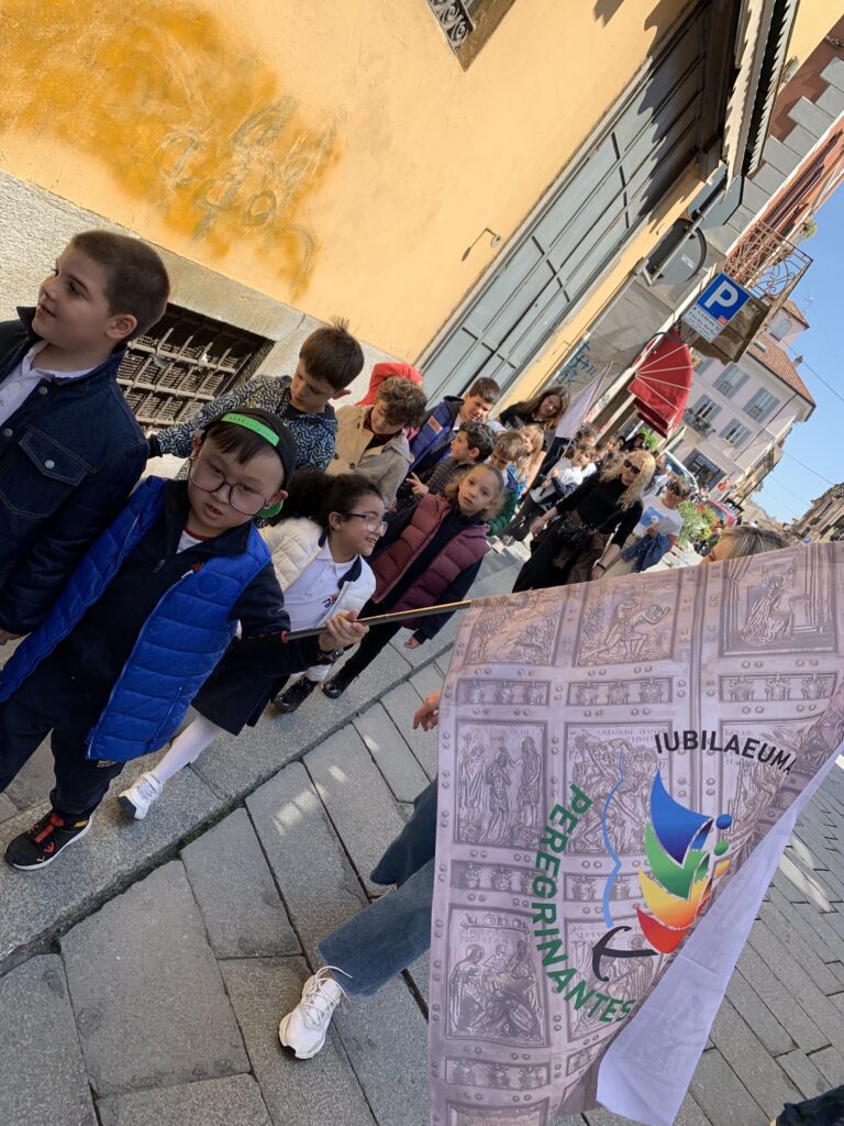 La preparazione ha visto gli alunni trattare la tematica trasversalmente nelle discipline e nelle varie classi, approfondendone le origini, la storia, i simboli, le curiosità e ovviamente il significato dell’indulgenza e più in generale del grande amore di Dio. Il giorno fissato per vivere insieme il Giubileo, in cortile c’è stata una breve spiegazione sull’esperienza e sul dono che ci si apprestava a vivere e un approfondimento delle origini del Giubileo, riportando alla memoria le antiche tradizioni ebraiche, quando il 50° anno era segnato dal suono del corno di ariete, il Jobel, che annunciava un tempo di liberazione e rinnovamento. Da questa radice profonda infatti, nasce il nostro Giubileo cristiano, che ogni 25 anni ci invita a riscoprire la grazia, la misericordia e l’amore di Dio. Abbiamo anche noi suonato il corno e abbiamo dato inizio al Pellegrinaggio dalla nostra Scuola alla Cattedrale della città.